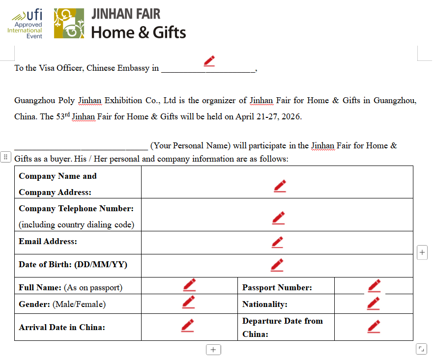 Please fill the invitation letter and send it to ella@jinhanfair.com .