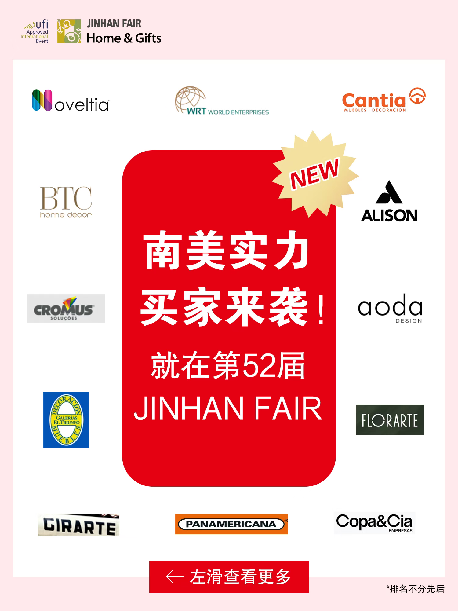🎉 JINHAN FAIR 为国内供应商提供直接对接南美大买家的平台,展示产品、洽谈合作、拓展国际市场,赢取更多订单🥰!