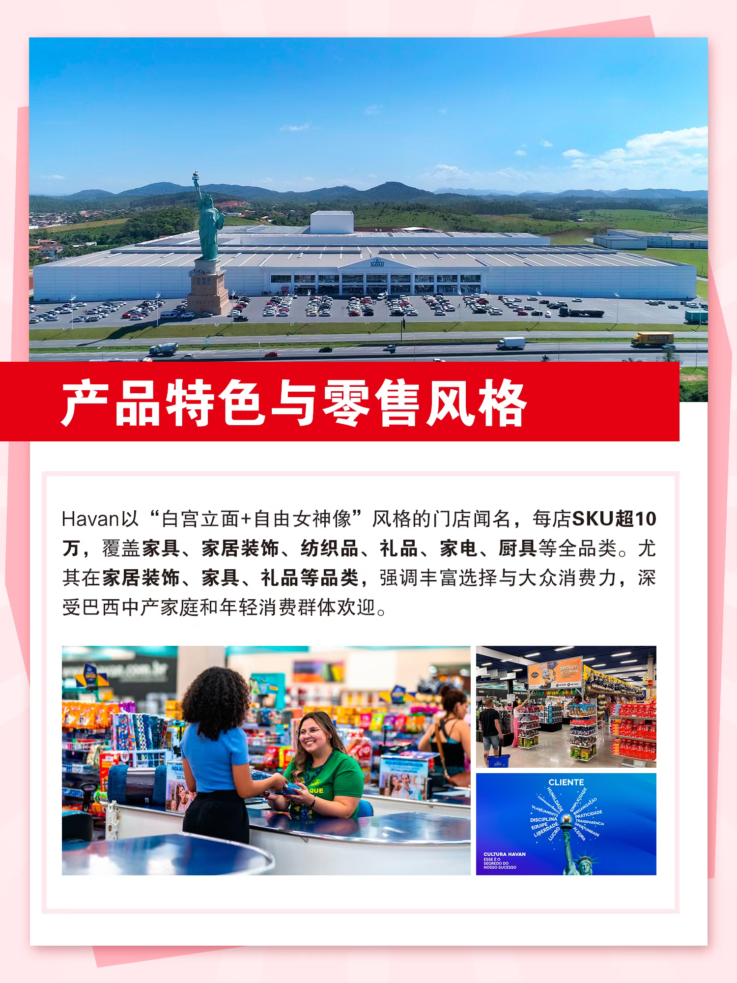 🌏Havan总部位于巴西圣卡塔琳娜州布鲁斯克,创立于1986年,被誉为“巴西的沃尔玛”。截至2024年,Havan已在巴西各州布局170+家大型连锁商场,年销售额超过200亿雷亚尔,是巴西最具影响力的百货与家居零售集团之一。