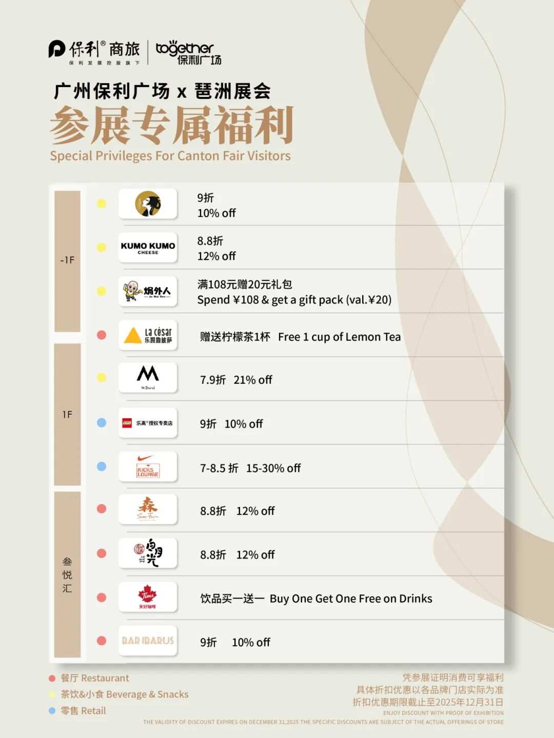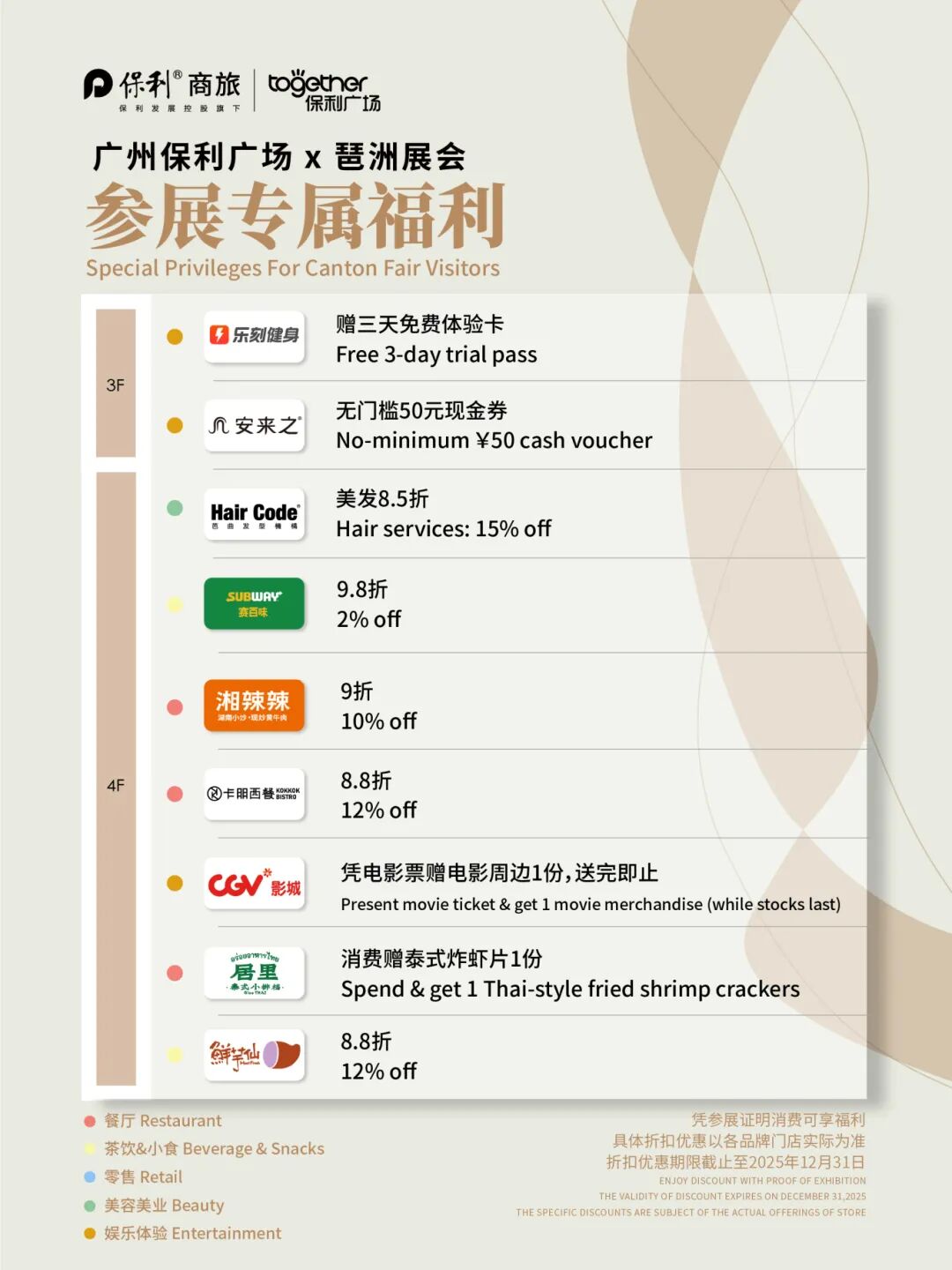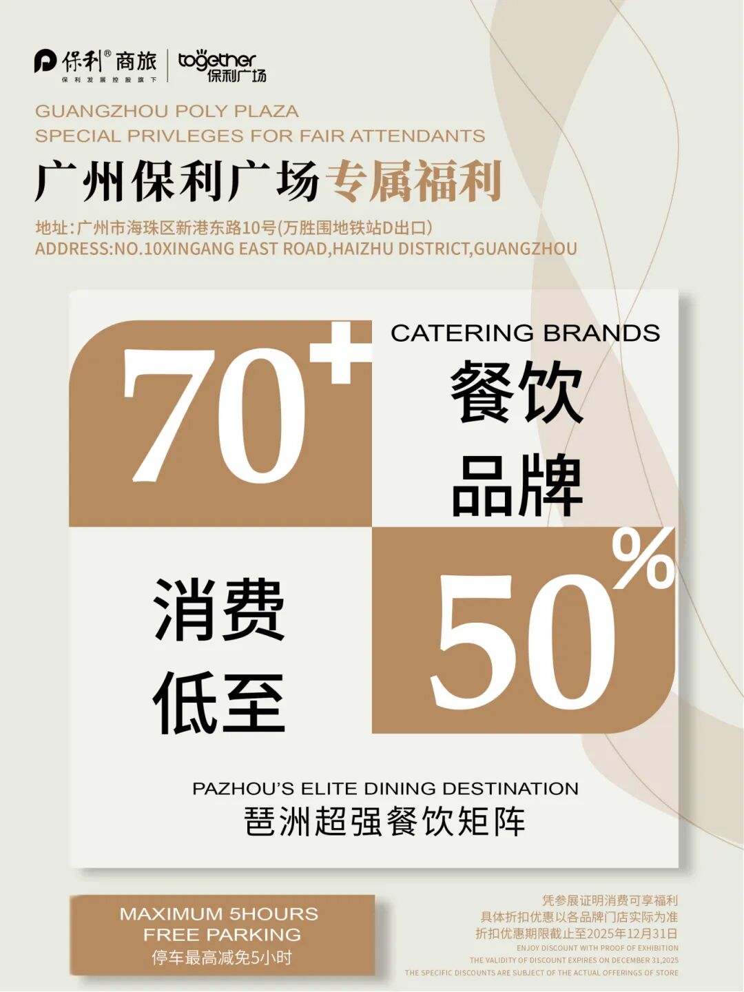 we've prepared some benefits for you at Guangzhou Poly Plaza, which is only an 8-minute drive from JINHAN FAIR.🎊