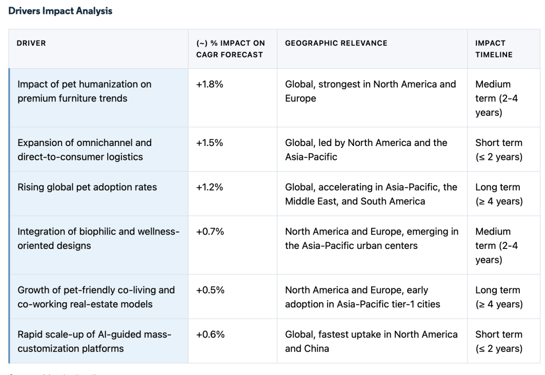 从结构来看,宠物沙发与床类产品贡献了超过35%–42.5%的核心营收,成为驱动市场增长的关键品类。在区域分布上:北美市场以35.7%的份额领跑全球,2024年市场规模达15.1亿美元;欧洲市场稳健增长;亚太地区则以最快增速崛起,成为全球品牌与供应链关注的重点区域。