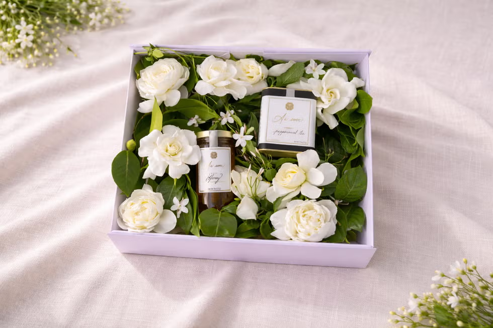 The Spring Equinox on March 20 is technically the official start of spring, but As Ever is getting started early. Meghan Markle’s lifestyle brand has another collaboration in the works, this time with High Camp Supply, a San Francisco-based luxury florist. A limited-edition “Bloom Box” will go on sale tomorrow, Wednesday, March 18, which will include an arrangement of 18 blooms of gardenias, white peonies, jasmine, and mint, packaged with As Ever’s Herbal Peppermint Tea and Sage Honey.